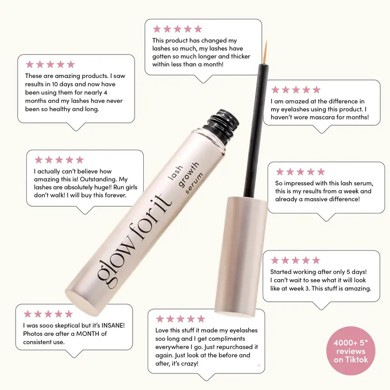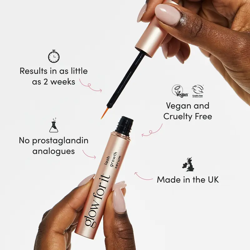 Transform your lashes with Glow For It Lash Serum ?C a vegan, prostaglandin free formula designed to give you healthier, thicker, fuller, longer lashes.Manufactured in the UK, this peptide powered serum nourishes and stimulates the lash follicle for visible results without the side effects of prostaglandin analogues.?Discover the power of naturally longer, fuller lashes with Glow For It Lash Serum. Powered by a peptide formula, this lash-enhancing serum nourishes, strengthens and stimulates hair follicles to promote longer, healthier lashes – without the use of prostaglandin analogues.Unlike many lash serums that contain prostaglandin analogues, which are known to cause orbital fat loss, hyperpigmentation, and discolouration, Glow For It is prostaglandin analogue free and gentle, making it safe for everyday use.??Clinically tested formula.??Dermatologically tested to be kind and safe for skin.